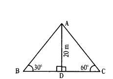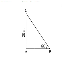 In figure, the angle of elevation of the top of a tower AC from a point B on the ground is 60°. If the height of the tower is 20 m, find the distance of the point from the foot of the tower.
