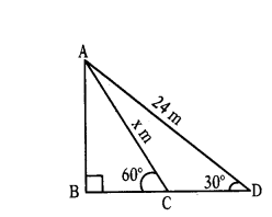 A wire of length 24 m had been tied with electric pole at an angle of elevation 30° with the ground. As it is covering a long distance, it was cut and tied at angle of elevation 60° with the ground. How much length of the wire was cut?