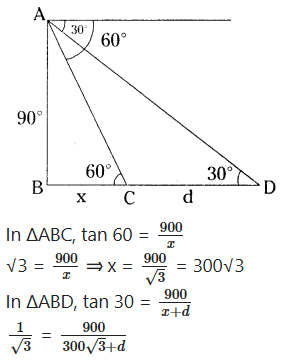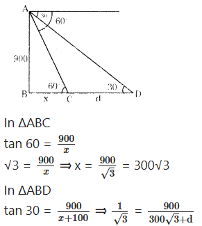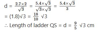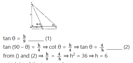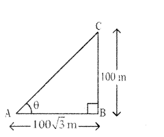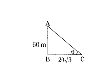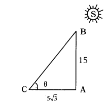 ∴ In ∆ABC tan θ = AB/AC= 15/5√3 = √3