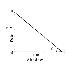 A 15m long pole forms 53 m long shadow at 8 AM in the morning. Then find the angle made by sun rays with earth.