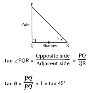 The ratio between the length of a pole and its shadow is 1 : 1 then find the angle of elevation of sun.