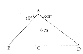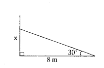 A tree breaks due to storm and the broken part bends so that the top of the tree touches the ground where it makes an angle 30°. The distance between the foot of the tree to the point where the top touches the ground is 8m. Find the height of the tree from where it is broken.