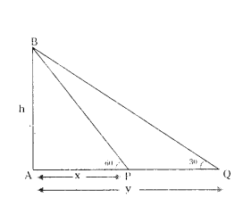 A right circular cylindrical tower, height ‘h’ and radius ‘r’ stands on the ground. Let ‘P’ be a point in the horizontal plane ground and ABC be the semi-circular edge of the top of the tower such that B is the point in it nearest to P. The angles of elevation of the points A and B are 45° and 60°