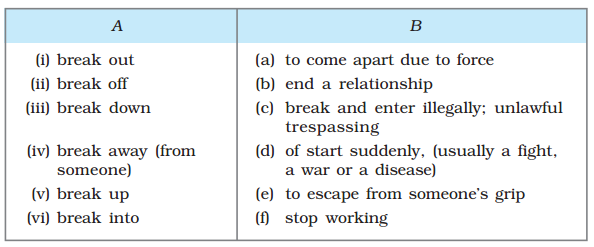 Read the following sentences carefully to understand the meaning of the italicised phrases. Then match the phrasal verbs in Column A with their meanings in Column B?