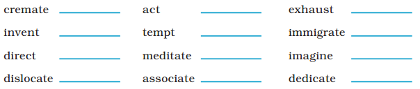 Use the suffixes -ion or -tion to form nouns from the following verbs. Make the necessary changes in the spellings of the words.