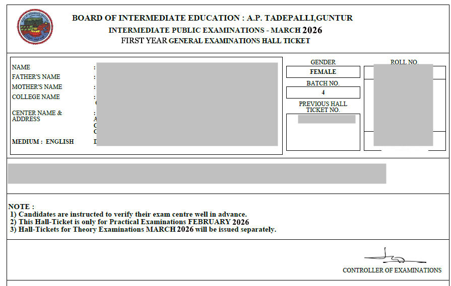 Details Mentioned on AP Inter 1st Year Hall Ticket 2026
