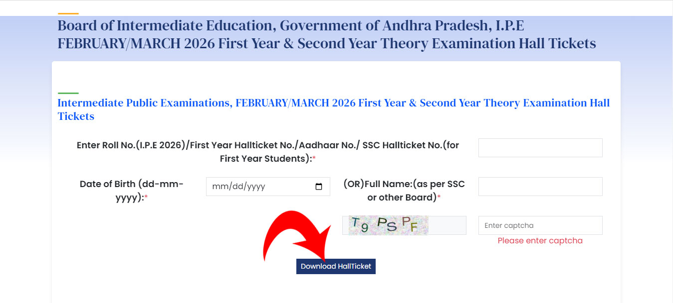 - Students and college management can download hall tickets through the official BIEAP website by entering the required details such as previous roll number or Aadhaar number and date of birth.