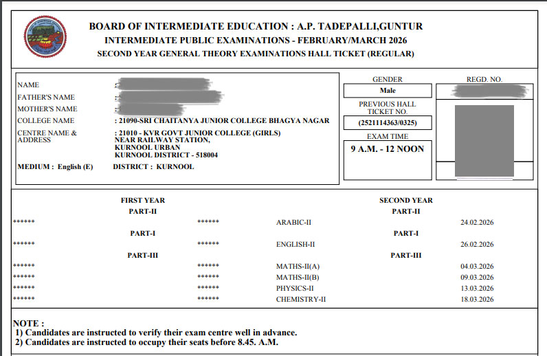 - 0.3 AP Inter 2nd Year hall tickets 2026 Released