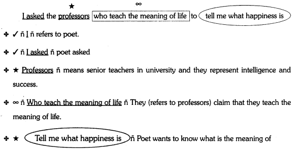 The poet begins the poem by asking the professors about the meaning of happiness. In spite of their intelligence and success, they can’t answer it. They claim that they teach the meaning of life. Then, he goes to the top executives and asks them the same question. Even though they boss | ten thousand men and represent money, they are unable to answer it. Both look at him as if he is ! trying to fool them.