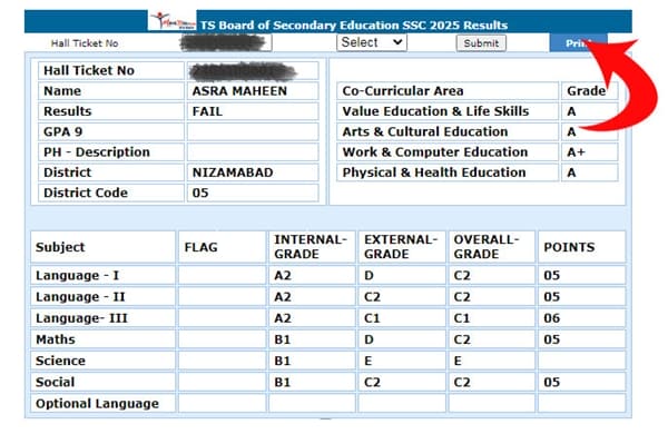 Some of the information that will be included in the online TS SSC advanced supplementary results 2025 include the following: