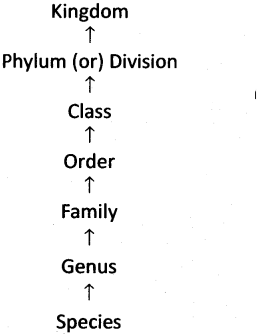 Flierarchy of categories is the arrangement of organisms in a definite sequence of categories. Descending order starts from kingdom to species. Ascending order starts from species to kingdom. This hierarchial system of classification was introduced by Linnaeus. The hierarchy includes seven categories – kingdom, division, or phylum, class, order, family, genus and species.