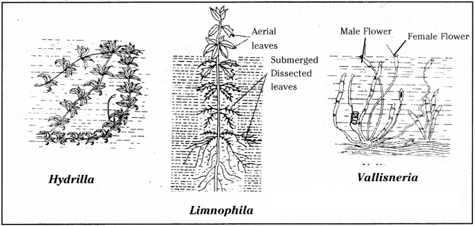 Ex : Vallisneria, Potamogeton - Amphibious plants :