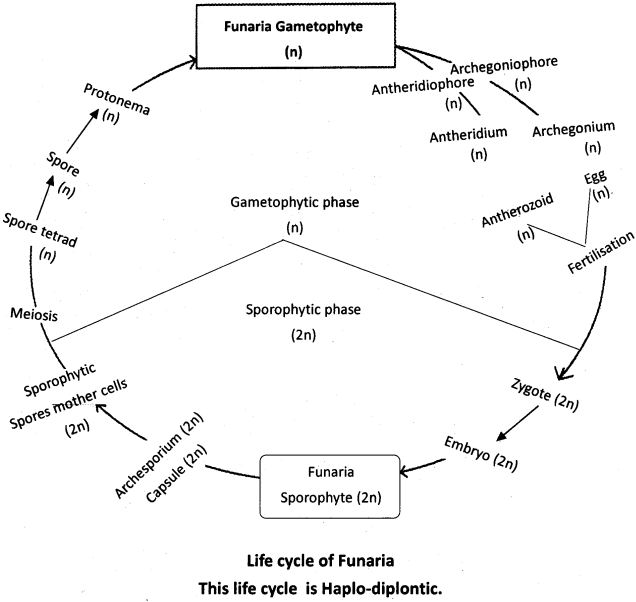- The spore mother cells in the spore sac of the capsule undergo meiosis and forms a number of haploid spores of one kind. Hence Funaria is homosporous.