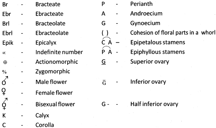 g. G stands for superior ovary and G¯¯¯¯ for inferior ovary and G – for half inferior or half superior. - Floral formula also indicates the number of free or united (within brackets) members of the corresponding whorl as subscript of the respective symbol.