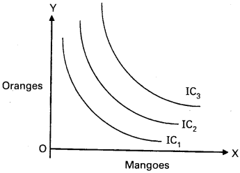 From the above diagram it is clear that an indifference map of IC1, IC2, IC3. Each curve shows a certain level of satisfaction to the consumer.
