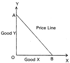 The concept of budget / price line will be shown in the following example. Suppose that a consumer has ₹ 150 (income) to buy two goods namely X and Y. Whose prices are ₹ 15 and ₹ 30 each. With the given information now we can draw the budget or price line as shown in the diagram.In the diagram AB’ is the ‘budget or price line’.