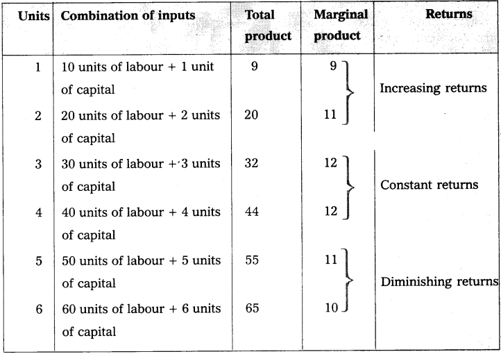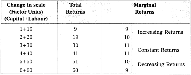 2.It assumes that state of technology remains the same. The returns to scale can be shown in the following table.