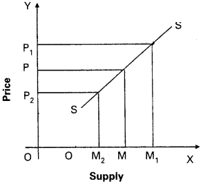 Supply curve can be derived based on the supply schedule. By the diagram price is shown on Y – axis supply is shown on X – axis SS is the supply curve which slopes upwards from left to right. It implies that as price increases, supply also increases and vice versa. If price increases from p – p1, supply also increases from M to M1 and vice Versa.