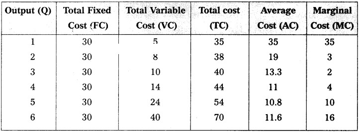 As mentioned earlier, short-run is a period of time within which the firm can vary its output by varying only variable factors of production. The fixed factors such as capital equipment, top management personnel etc., cannot be varied. Therefore, short-run cost structure of a firm reveals fixed costs and variable costs, Total Cost (TC), Total Fixed Costs (TFC), Total Variable Costs (TVQ, Total Average Costs (SAC) and Marginal Costs (SMC). But in the long-run, all costs are variables. The nature of short-run costs and the curvature of these costs are explained by using table and figure.