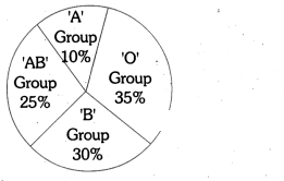 The following pie chart depicts the results of a survey regarding distribution of different Blood Groups in a college.