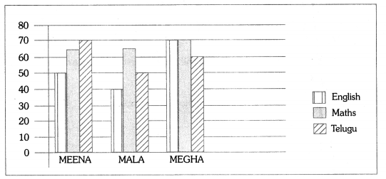 In this table, the marks secured by 3 students are compared. While all the three students scored equal marks in Hindi, there is a slight variation of marks in Mathematics and Social Studies. However, there is a great variation of marks in English. From the table it can be concluded that Aravind needs to concentrate more on English and Science, whereas Akash needs to focus on Telugu and English. Ramesh, who scored the highest marks among the three, needs to focus on Telugu.