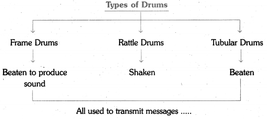 The oldest musical instrument in the world is the drum, made initially in one of the three ways. First, frame drums were made by stretching the skin over bowl-shaped frames. Next, rattle drums were made by filling gourds or skins with dried grains, shells, or rocks. Finally, tubular drums were made from hollowed logs or bones covered with skins. Both frame and tubular drums were struck with the hand or with beaters to produce sounds. In contrast, rattle drums were shaken or scraped to make rhythmic sounds. For thousands of years, drums have been used to transmit messages to call soldiers to battle and make music.