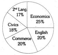 The following piechart depicts the favourite subject of students in a class. We can see from the figure that five subjects have been taken into consideration – Economics, Civics, Commerce, English and 2nd Language. Students who like Economics form the largest group. A quarter of the students of the class i.e 25% expressed preference for this subject. 20% of the students like English and the same percentage i.e 20% of the students like Commerce. Next in popularity is Civics, liked by 18% of the class. Finally, trailing closely behind Civics, comes 2nd Language, which is the favourite subject of 17% of the students.
