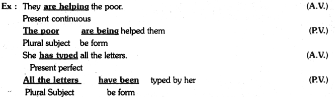 2. A suitable ‘be’ form is to be introduced. This is the most important step. Selection of the right be’ form is based on two factors : (a) the number and person of the subject in the passive voice and (b) the tense of the verb in the Active Voice.