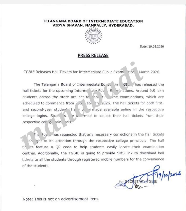 - 0.12 TG Inter Regular Hall Ticket 2026 to Release Soon at tgbie.cgg.gov.in & www.manabadi.co.in