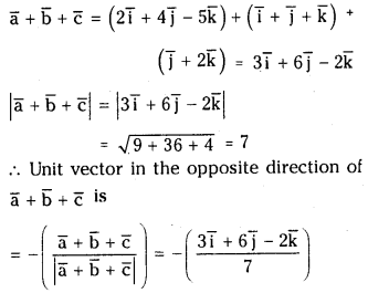 Let a̅ = 2i̅ + 4j̅ – 5k̅, b̅ = i̅ + j̅ + k̅ and c̅ = i̅ + 2k̅. Find the unit vector in the opposite direction of a̅ + b̅ + c̅. (March 2015-A.P)(May 2012; Mar. ’04, ’12; Board Model Paper) (V.S.A)