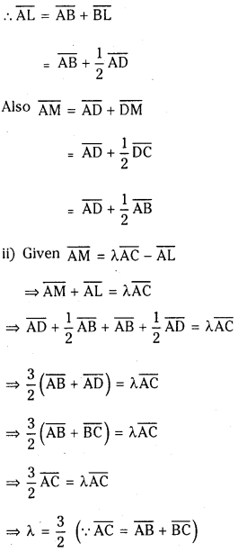 - 2.1 I. Question 1. ABCD is a parallelogram. If L and M are the middle points of BC CD respectively then find i) AL and AM in terms of AB and AD ii) λ, if AM = λ AC−AL(V.S.A)