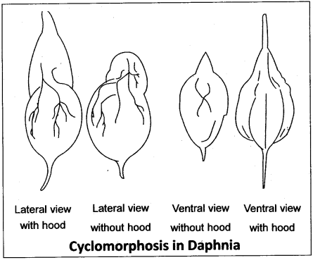 The cyclic seasonal morphological variations among certain organisms is called cyclomorphosis. This phenomenon has been demonstrated in the cladoceran (a sub group of Crustacea) Daphnia (water flea). In the winter season the head of Daphnia is ’round’ in shape (typical or non-helmet morph). With the onset of the spring season, a small ‘helmet’/ ‘hood’ starts developing on it. The helmet attains the maximum size in summer. In ‘autumn’ the helmet starts receding. By the winter season, the head becomes round. Some scientists are of the opinion that cylomorphosis is a seasonal adaptation to changing densities of the water in