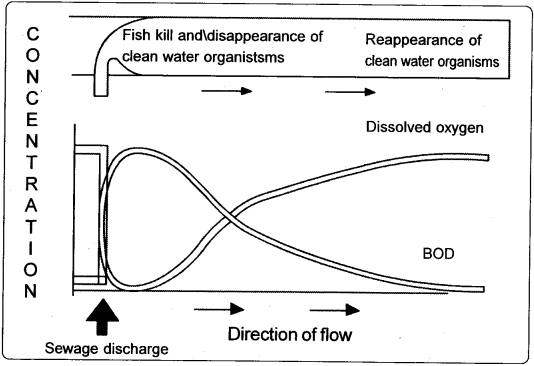 Organic substances present in the water deplete the dissolved oxygen content in water by increasing the BOD (Biological oxygen demand) and COD (Chemical oxygen demand). Most of the inorganic substances render the water unfit for drinking. Outbreaks of dysentery, typhoid, jaundice, cholera etc., are caused by sewage pollution.