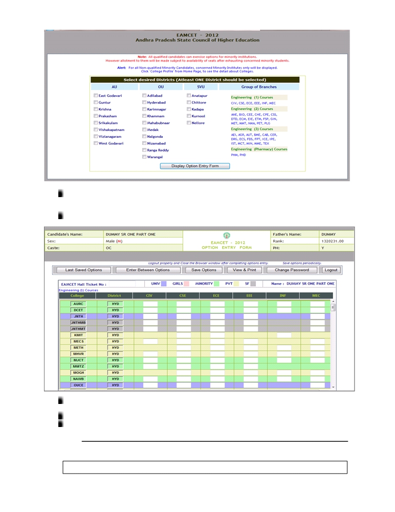 taken for allotment of seats. You can take a printout of the options exercised.