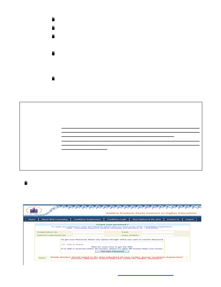 Registration number, Rank, EAMCET Hall ticket number and date of Birth and mobile number which you