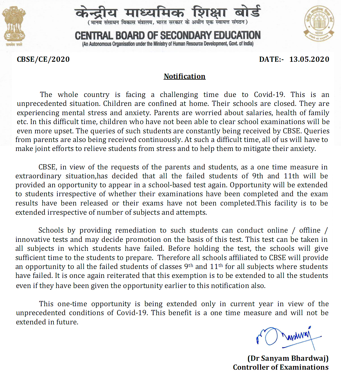 The whole country is facing a challenging time due to Covid-19 . This is an unprecedented situation. Children are confined at home. Their schools are closed. They are experiencing mental stress and anxiety. Parents are worried about salaries, health of family ets. In this difficult time, children who have not been able to clear school examinations will be even more upset. The queries of such students are constantly being received by BCS, Queries from parents are also being received continuously.At such a difficult time, all of us will have to make joint efforts to relieve studenta from and to help them to mitigate their anxiety.