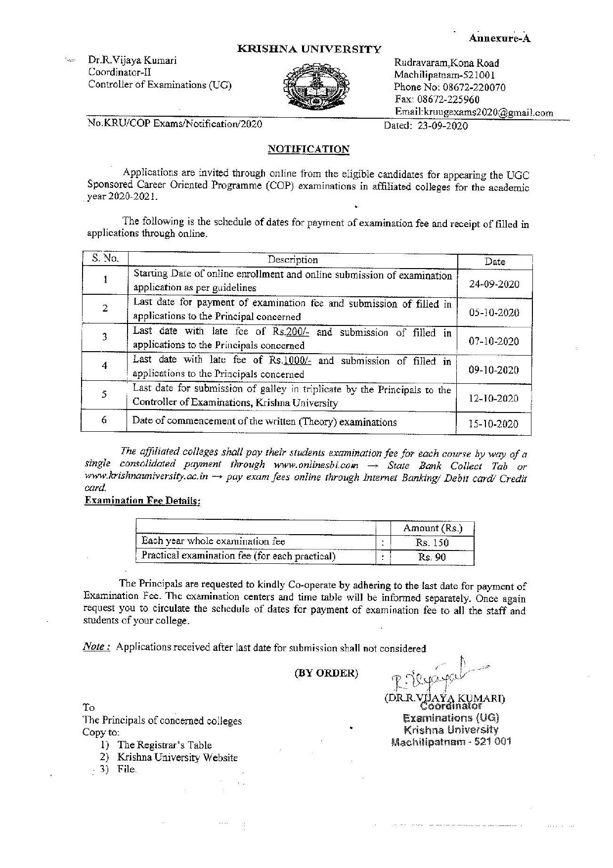 It is hereby notified for the information of all concerned that the Master of Physical Education II Semester Regular and I Semester backlog and Improvement Examinations for the Academic Year 2019-2020 will be conducted in the month of Nov/Dec 2020. The detailed Time Table and examination centre will be notified in due course. PAPER-wise improvement is permissible in the next immediate examination only