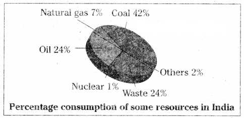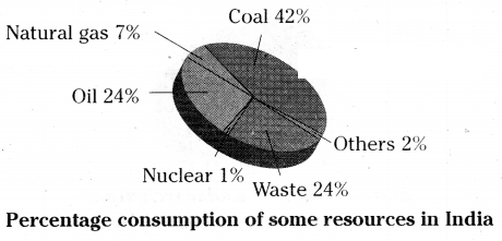 Draw a pie diagram showing percentage consumption of some resources in india?