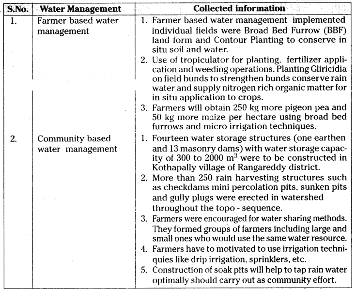 - Farmers were encouraged to use water resource jointly and irrigate land using micro irrigation methods like sprinklers and drip irrigation