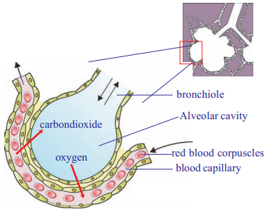 - Alveoli are so thin that oxygen can pass from air-filled alveoli to R.B.C inside the vessels