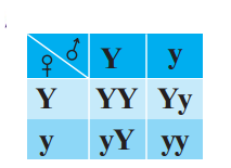 When cross is done between pure yellow and pure green pea seed-producing plants the following results were obtained. (Y = yellow ; y = green)?