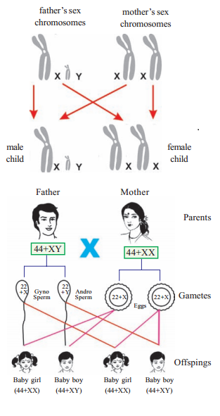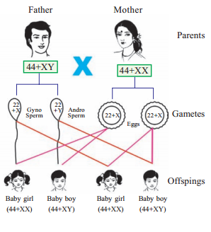 - All the gametes produced by woman have only X chromosomes. The gametes produced by a man are of two types one with X chromosome and other with Y chromosome