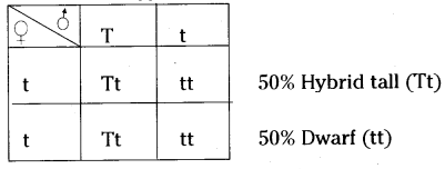 The cross between Hybrid tall (Tt) and dwarf (tt), what will be F1 generation progency. Write phenotypic and genotypic ratio?
