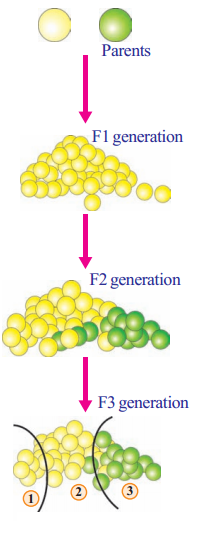 - A Set of peas (about 50%) obtained in F2 generation are heterozygous yellow and give yellow and green seeds in 3:1 on self pollination