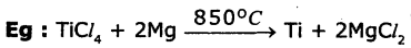4. Reduction of ores (compounds) by more reactive metals: When highly reactive metals such as sodium, calcium, aluminium etc., are used as reducing agents, they displace metals of low reactivity from the compound.
