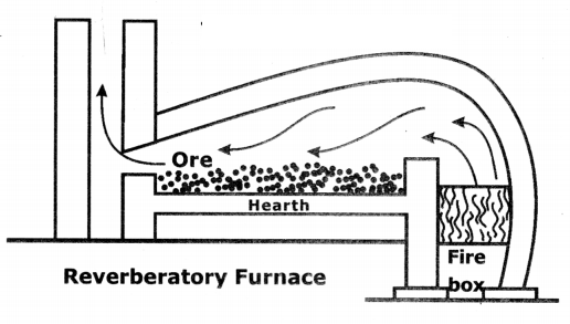 Reverberatory furnace: It has both firebox and hearth separated. but the vapours(flame) obtained due to burning of the fuel touches the ore in the hearth and heat it.