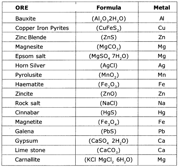 The elements or compounds of the metals which occur in nature in the earths crust are called minerals.