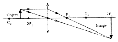 When an object is placed at the centre of curvature (C2) on the principal axis, we will get an Image at (C1) which is real, inverted and of the same size as that of the object.