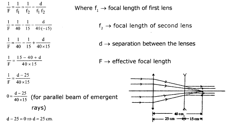 - light rays passing through focal point will emerge parallel to principal axis, the two lenses should be arranged as shown.