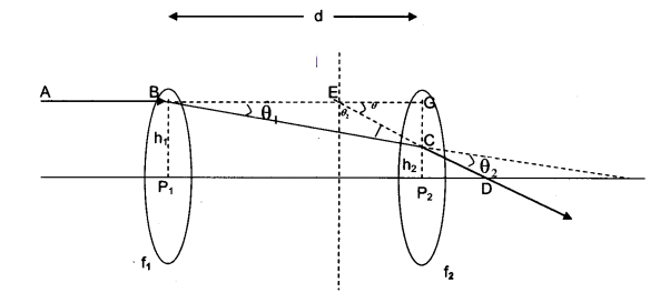 - The two lenses are arranged on a common principal axis such that their focal point coincides with each other.